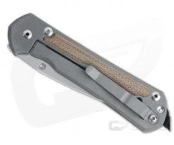 Chris Reeve Large Sebenza 31 Left Handed Natural Micarta Inlay Boomerang Damascus Drop Point Folder