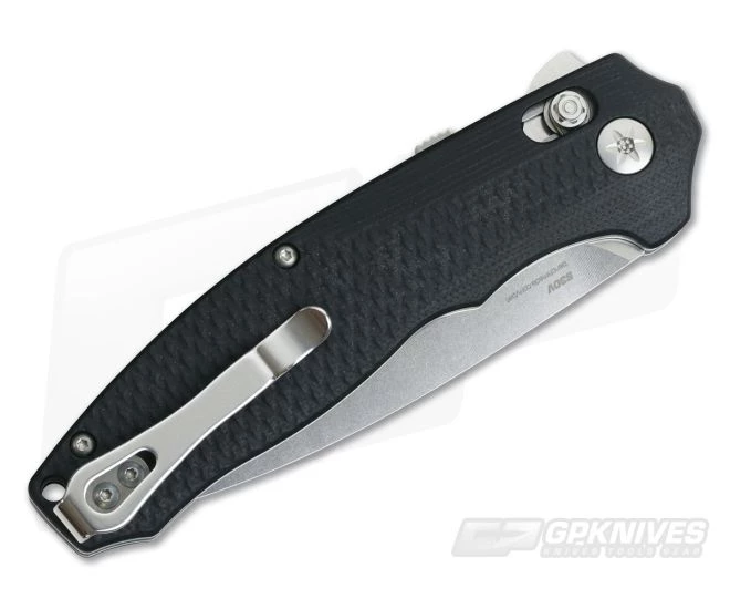 The Handle: Black G10 scales mounted to stainless steel liners are contoured on the edges for comfort and sport diamond texturing on the flats for excellent security in the hand. An open back construction reduces weigh and makes for easy maintenance. The AXIS lock provides true ambidextrous operation and some of the most secure lockup in the industry.