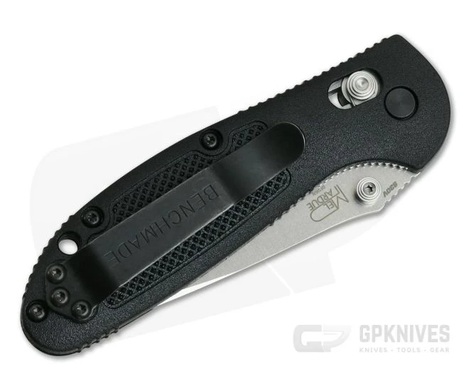 The Benchmade 556-S30V Mini Griptilian offers the value of the classic GTX handled Mini Griptilian with the enhanced performance of CPM-S30V for the blade steel. The Mini Griptilian offers the same great performance of the full-size version in a more carry friendly package. This version comes with a plain edge, satin finished, saber ground Drop Point blade with thumb stud opening and black handles.