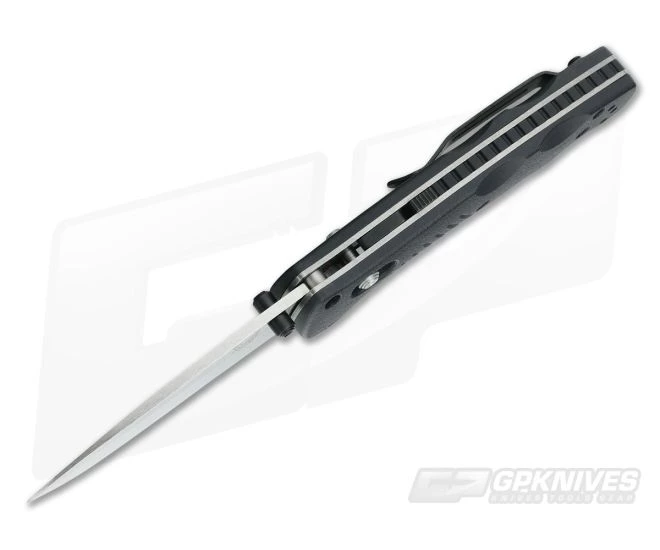 Benchmade 585 Mini Barrage with plain edge 154CM stainless steel blade and Valox handles. Features 420J stainless steel liners and reversible split arrow pocket clip. Completely ambidextrous thumb stud, locking mechanism and pocket clip. Spring assisted model with the Benchmade signature axis lock. Safety for opened and closed positions. Osborne design.