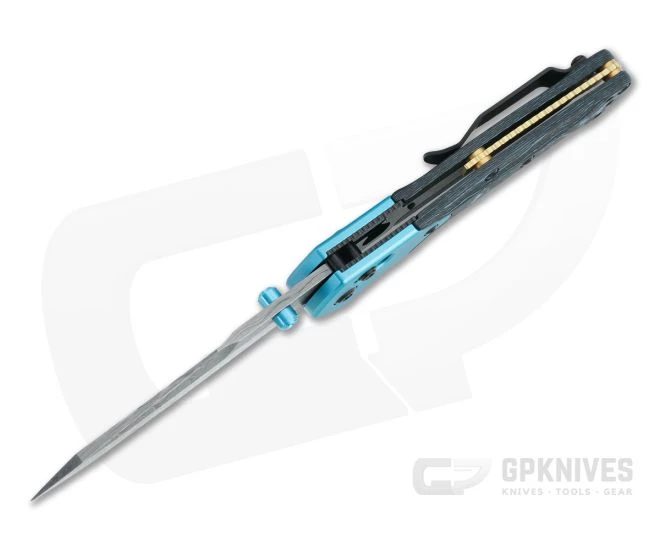 Handle: Contoured Arctic Storm Fat Carbon handle scales pair with aqua anodized bolsters for a striking look, ergonomic comfort and a lightweight, durable handle with a versatile, neutral design. A gold-plated floating back spacer complements this high-class piece while the ambidextrous AXIS lock delivers smooth operation with reliable, rock solid lockup for safe use.