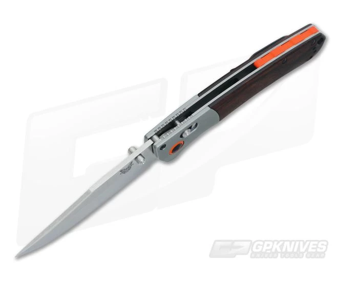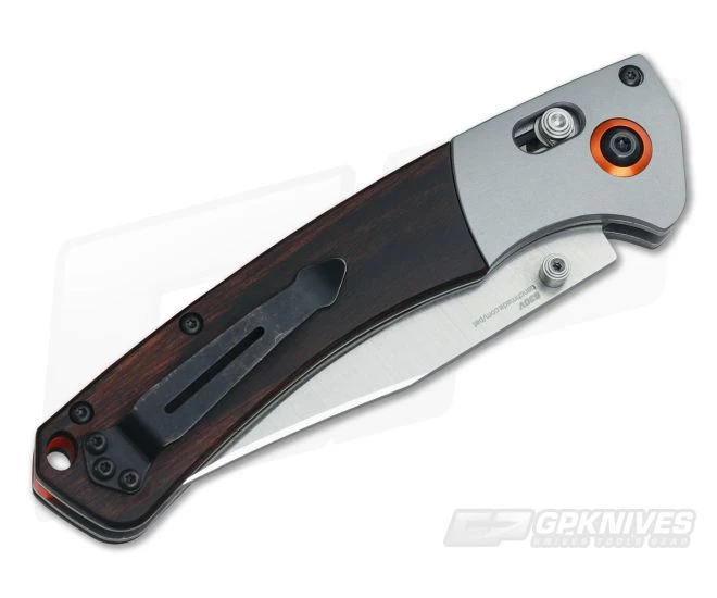 The Blade: Just about 4 inches of premium USA Made CPM-S30V stainless is formed into a handy utility Clip Point blade shape. This gives the user a bit of an upswept tip great for skinning, slicing and piercing tasks. It has a straight plain edge very sharp out of the box with ambidextrous thumb stud openers for deployment. The combination stonewash/satin appearance is an overall excellent working finish as it will hide most scratches and dings from use. It locks up rock solid using Benchmade’s patented AXIS® Locking mechanism for right or left handed users.