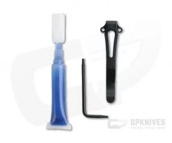 Handle: A stainless steel liner construction supports high-traction Black molded CF-Elite handle scales with finger divots and multiple sections of jimping delivering security in the hand even in highly adverse conditions. The neutral design means the handle is comfortable in multiple grips for utility or defensive use. Fully ambidextrous, the AXIS lock is smooth, reliable and one of the strongest locks around. A red partial back spacer helps identify this as a trainer model. A large hole is provided for lanyard attachment (tool and Loctite included).