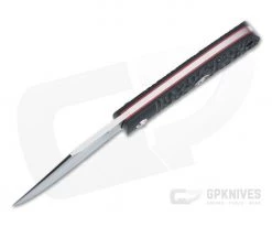 Handle: Red fiber liners contrast with the contoured and milled G10 scales for visual appeal. The scales are bolster milled with a hammered-texture milling for solid traction. A full-length stainless back spring protects the blade when closed and delivers solid non-locking slip joint operation.