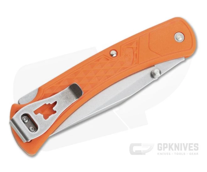 The Buck lock back 110 Folding Hunter is an iconic folding knife from Buck and is now available in the Slim Select version with a thin, lightweight construction featuring durable nylon handles. The Slim Select version offers one-hand opening, convenient pocket clip carry and a Paul Bos Heat Treated 420HC blade for all your every day cutting needs. As always, the Slim Select 110 is proudly Made in the USA and backed by the Buck Forever Warranty. This version comes with a Blaze Orange nylon handle.