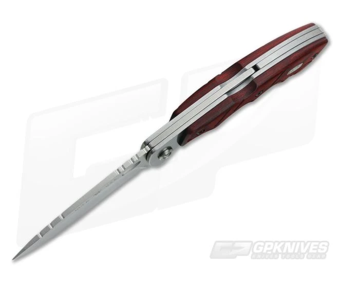 The Handle: The sweeping handles of the 556 are made from contoured Red Wood with traction grooves over robust stainless steel liners. The Red wood handles provide comfort and security in the hand with a classic look and feel. A simple and sturdy back lock mechanism offers secure lockup during use and, thanks to the central placement, is easy to disengage single-handedly. The back lock construction also makes the Folding Skinner a fully ambidextrous knife. A stainless steel deep carry clip is set up for right hand, tip-up carry.