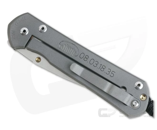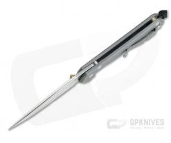 Blade: The traditional drop point blade style composed of premium CPM-S35VN has been fully stonewashed. The stonewashed finish is great for day to day use showing little wear. A single gold anodized titanium thumb stud is attached for left-hand opening. The blade operates incredibly smoothly on custom bronze washers and is delivered razor sharp.