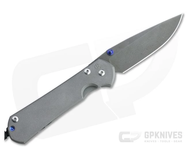 Chris Reeve Large Sebenza 31 Left Hand Raindrop Damascus Blasted Titanium Folder 001