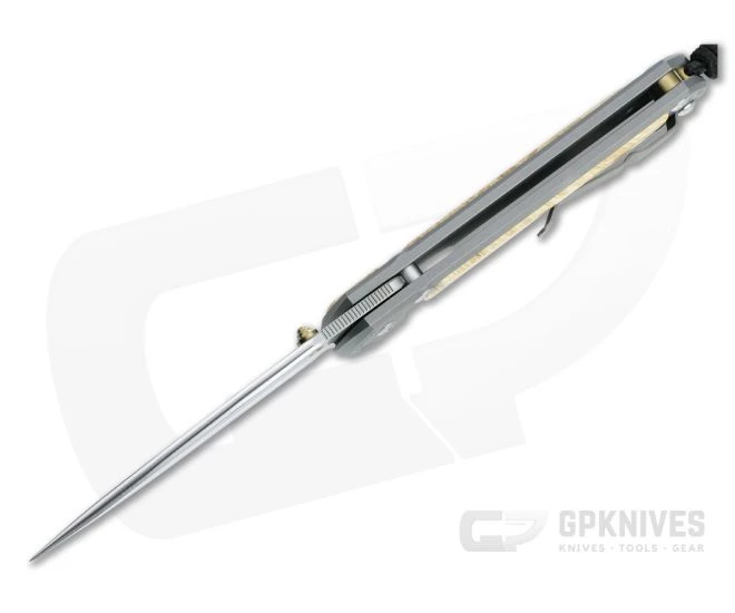 Handle: Upgraded with a handsome glass-bead blast finish, the 6AL4V titanium handle slabs have a smooth, silky feel. The front Box Elder wood inlay is a large, single piece that lends a sleek elegance to the clean design. A Reeve Integral Lock utilizes the titanium frame to deliver “bank vault” lockup, while the Ceramic Ball Interface increases lock reliability and life while delivering smooth operation. Includes a tube of fluorinated grease, microfiber cloth and information packet.