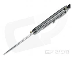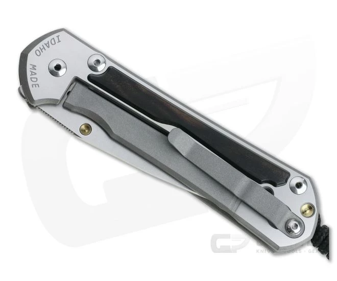 Handle: The dual slabs of 6AL4V titanium are satin finished and inlaid with Macassar Ebony wood. The front inlay is a large, single piece that lends a sleek elegance to the clean design. The Reeve Integral Lock utilizes the titanium frame to deliver “bank vault” like lockup. An upgraded Ceramic Ball Interface increases the reliability and life of the lock while offering an extra smooth operation of both lock and blade. The construction is completed with full titanium hardware including a gold anodized spacer and lanyard pin. A black nylon lanyard comes installed.