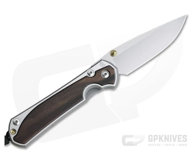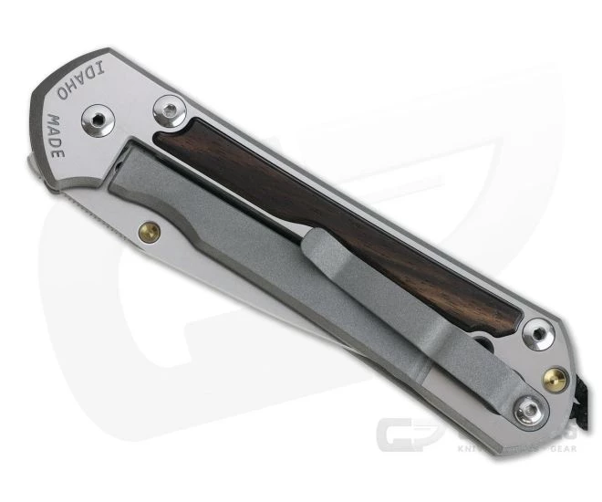 Handle: The dual slabs of 6AL4V titanium are satin finished and inlaid with Macassar Ebony wood. The front inlay is a large, single piece that lends a sleek elegance to the clean design. The Reeve Integral Lock utilizes the titanium frame to deliver “bank vault” like lockup. An upgraded Ceramic Ball Interface increases the reliability and life of the lock while offering an extra smooth operation of both lock and blade. The construction is completed with full titanium hardware including a gold anodized spacer and lanyard pin. A black nylon lanyard comes installed.