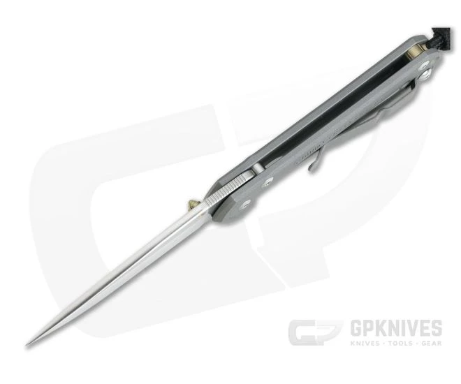 Blade: The traditional drop point blade style composed of premium CPM-S35VN has been fully stonewashed. The stonewashed finish is great for day to day use showing little wear. A single gold anodized titanium thumb stud is attached for left-hand opening. The blade operates incredibly smoothly on custom bronze washers and is delivered razor sharp.