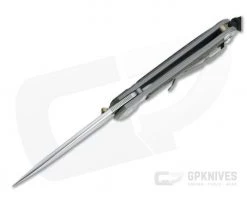 Handle: The dual slabs of 6AL4V titanium are satin finished and inlaid with Bog Oak wood. The front inlay is a large, single piece that lends a sleek elegance to the clean design. The Reeve Integral Lock utilizes the titanium frame to deliver “bank vault” like lockup. An upgraded Ceramic Ball Interface increases the reliability and life of the lock while offering an extra smooth operation of both lock and blade. The construction is completed with full titanium hardware including a gold anodized spacer and lanyard pin. A black nylon lanyard comes installed.