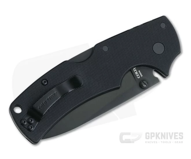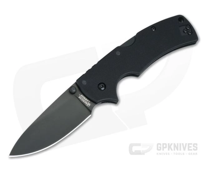 The Cold Steel American Lawman is a full-size folding knife designed to be an officers true companion blade on or off duty. The handles are made from linerless G10 for lightweight durability and slim, discreet carry. A flat ground spear point blade offers a high level of utility for both slicing and piercing while maintaining plenty of strength for heavier tasks. The Tri-Ad back lock, thumb studs and clips make the American Lawman fully ambidextrous and a perfect choice for those looking for a reliable cutting tool for serious use every day of the week. This version comes with a black DLC coated, S35VN blade and black G10 handles.