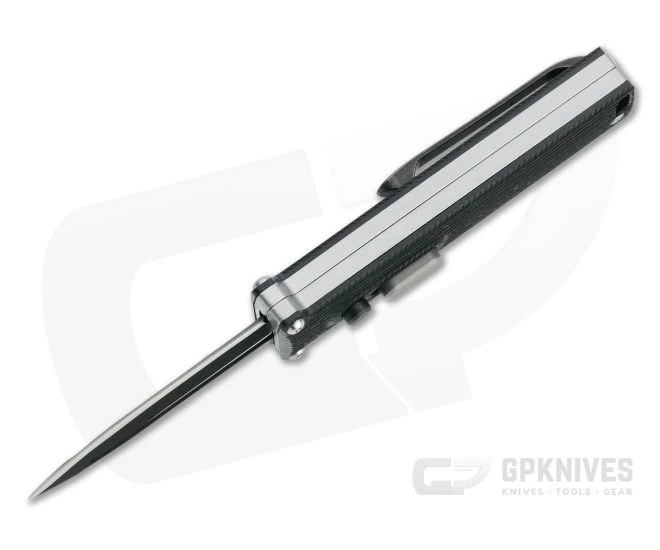 Blade: Made from premium, Bohler M390 stainless steel the dagger blade is a California legal sub-2 inches in length and stout enough for strength in piercing and general utility use. The two-tone black PVD finish is classy and discreet. Deployment is decisive and smooth at a touch of the button. Pull the tang lever down to close the blade, making it ready again.