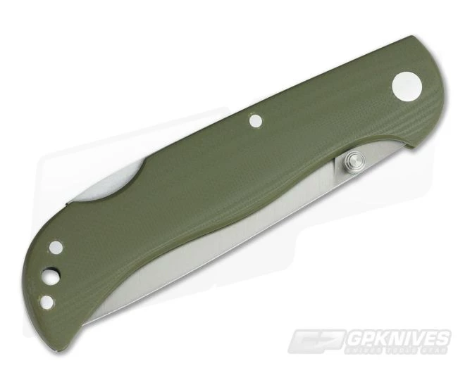 Handle: The back lock is a timeless classic; simple, easy and reliable. Modern Green G10 handle scales provide durable, light weight performance and are contoured for enhanced comfort. A hole at the pommel is provided for lanyard attachment.