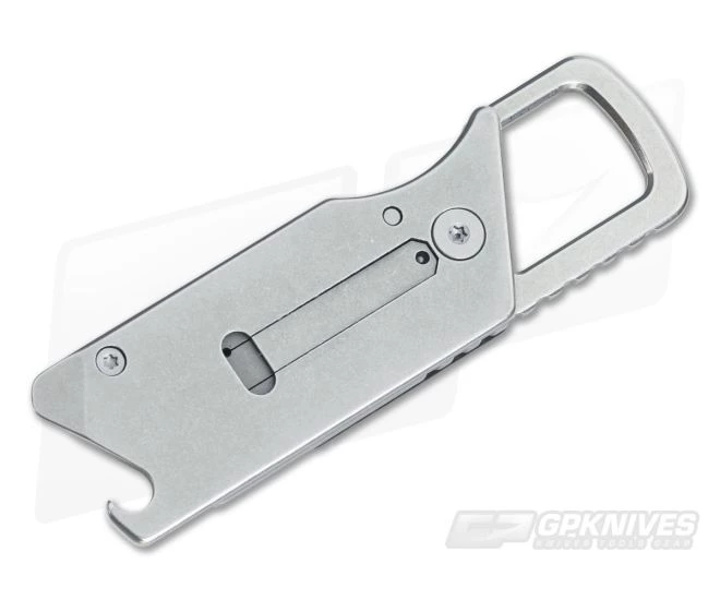 You’ll find on one end of the open construction model a bottle opener with mini pry flathead screwdriver tools and the other a carabiner-styled keychain attachment. Pull down on that carabiner end and you’ll begin opening a super cool sheepsfoot-styled knife blade. It’s sharply hollow ground, stonewashed and gives the user a little over 1.5 inches of cutting edge.