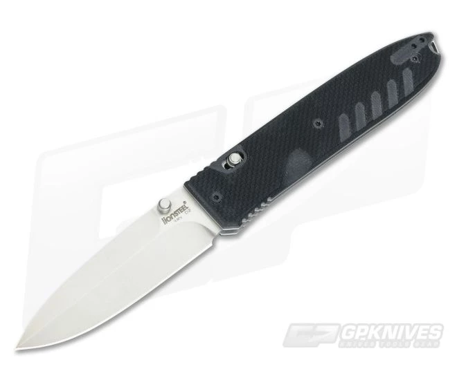 LionSTEEL Daghetta folding knife featuring textured G-10 handle and D2 tool steel spear point blade. The Daghetta has a very innovate lock mechanism known as a TOL or Tactical Operation Lock system. The system offers more control and strength of the back spring making the operation much easier than the typical lock back mechanism. The spring loaded lock release on the handle allows for easy one hand opening and closing. The spear point blade is razor sharp and satin finished with dual thumb stud openers. Includes a tip up carry reversible pocket clip for a truly ambidextrous everyday carry. The Daghetta G-10 is brand new direct from LionSTEEL Knives, Italy.