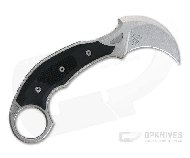 Designed by Bastinelli Knives in collaboration with Microtech, the Iconic Karambit is a modern interpretation of the classic Filipino Karambit. This left-hand carry version makes a powerful defensive tool as well as a practical, utility blade. This version comes with a stonewashed finish, CTS-204P blade and black G10 handle scales.