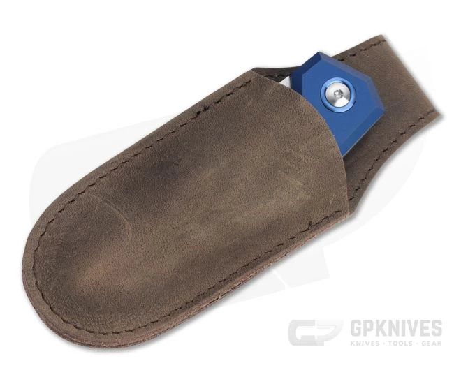 Handle: Dual slabs of anodized aluminum are chamfered for an ergonomic grip on the milled handle. Angular milled windows give a nice visual appeal and traction in the hand that pairs with the integral guard for a safe, secure grip. The proud back spring has a similar milled hole for lanyard attachment and is crowned for comfort and style. Stainless hardware and a blue anodized pivot collar complete the construction.