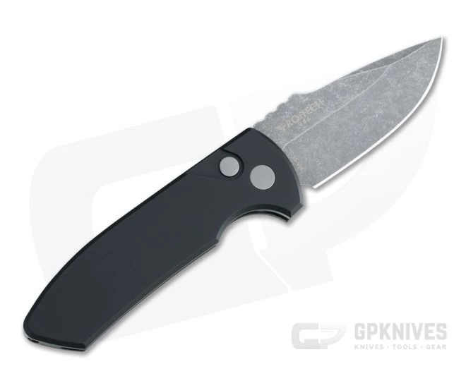 The Protech Knives SBR (Short Bladed Rockeye) is a utilitarian, compact, every-day-carry version of the Les George iconic Rockeye model, retaining the classic design in a smaller package. The SBR has the same American innovations as the Rockeye, featuring modern materials, high-tech manufacturing, advanced coil spring mechanism, and quality American production. This left-handed version has a tumbled, Acid Washed S35VN blade, smooth black hard anodized aluminum handles and blasted hardware.