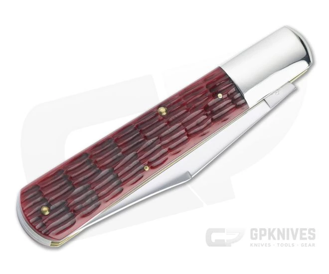 Part of a set of limited 2007 Series XVII knives, the Granddaddy Barlow is an extra large version of the classic pattern with large clip and smaller pen blades in polished 420HC stainless steel. Long bolsters top the Keystone State Timeworn Red Jigged Bone. Standard blade stamps and markings as shown. One of a limited 600 piece production run.