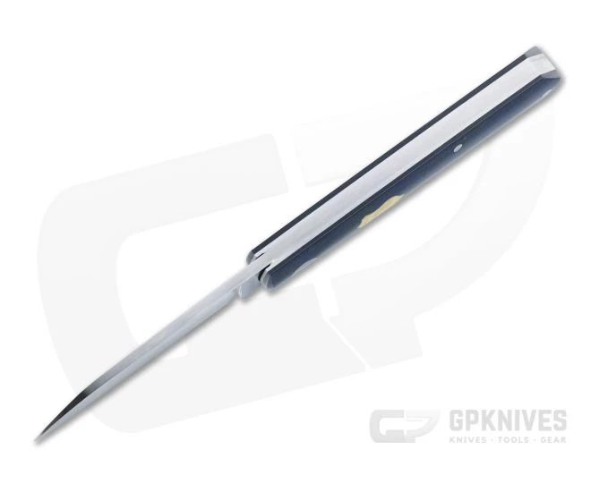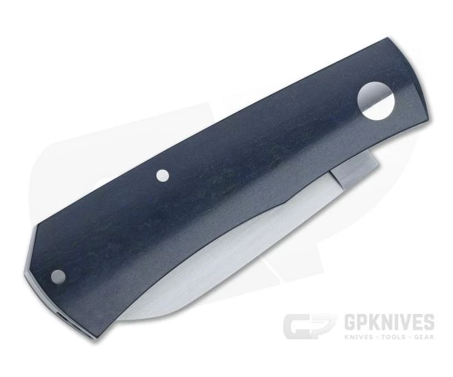 Handle: Stainless liners support contoured Richlite covers for a solid and comfortable grip. The covers are attached with stainless pins and the liners are engine turned or jeweled for a truly custom free. A solid stainless steel back spring protects the blade when closed and delivers snappy slip joint action for safe use. Includes a felt slip for storage and carry, nylon drawstring bag and signed Certificate of Authenticity.