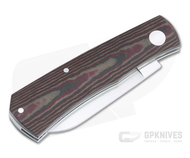 Handle: Stainless liners support contoured Richlite composite covers for a solid and comfortable grip and plenty of visual appeal. The covers are attached with stainless pins and the liners are engine turned or jeweled for a truly custom feel. A solid stainless steel back spring protects the blade when closed and delivers snappy slip joint action for safe use. Includes a felt slip for storage and carry, nylon drawstring bag and signed Certificate of Authenticity.