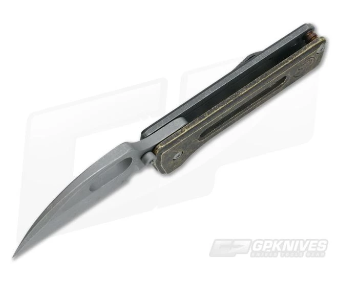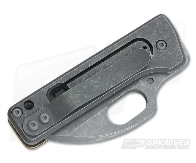 The Handle: Precision machined Brass has an antiqued, dark tumbled finish with lightening holes and the SP Logo on the front. Open construction with a single bronze anodized titanium standoff makes for a simple and easy to maintain design. Titanium hardware and an attached titanium pocket clip for right-handed tip-up carry complete the Thorn Gen2.