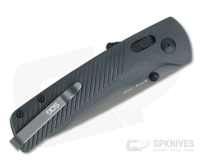 SOG’s Flash AT is a purpose built everyday carry folder built for comfort, performance and discreet carry required for daily carry and use. Fully ambidextrous and easy to use even with gloves thanks to the SOG Assisted Technology deployment, robust XR lock and quality fit, finish and materials the Flash AT is sure to be a mainstay in your EDC lineup. This version has Urban Grey GRN handles and a Gray Titanium Nitride PVD coated, partially serrated D2 blade.