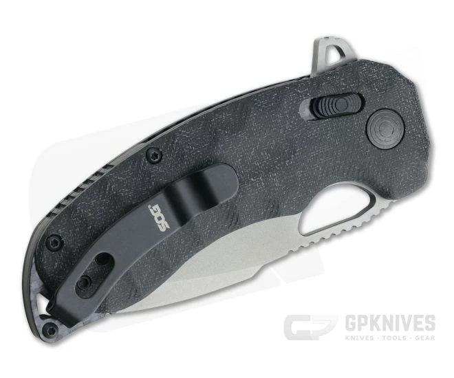 Designed by Japanese custom knife maker Kiku Matsuda, the SOG Kiku XR combines Matsuda’s visually appealing aesthetic with a robust and purpose built construction and premium materials for a winning design. Compact for carry, the Kiku XR LTE comes with ridged carbon fiber liners reducing the weight for easier daily carry. The knife retains the bombproof ambidextrous XR lock and CTS-XHP compound ground, harpoon recurve blade for optimal cutting performance. This Blackout version has black linen Micarta handle scales and a Graphite TiNi coated blade.