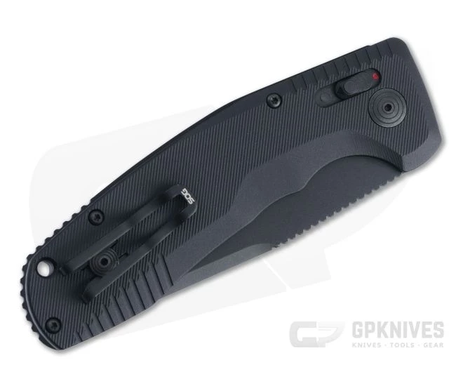 Based on the design of the original SOG-TAC automatic, the TAC XR introduced the ambidextrous XR Lock to this iconic platform. SOG is back again with the next evolution in the TAC AU automatic folder. It retains the XR lock with the addition of a double-action safety that allows for secure carry with fast deployment. A robust construction makes this a popular choice with military, law enforcement and civilian users alike. This Tanto version comes with a black titanium nitride coated, partially serrated D2 tool steel blade and matching 6061-T6 aluminum handle scales.