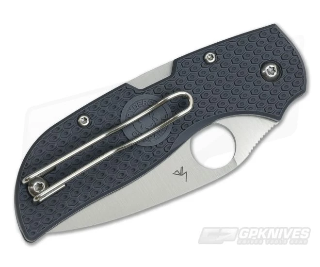 Handle: Gray FRN handles offer the security of Spyderco’s Bi-Directional Texturing with a reduction in weight and exceptional durability and affordability with inset skeletonized steel liners for a solid feel. A fully accessible Spyderco Round hole and mid-back lock make the Chaparral fully ambidextrous. The chamfered* lock bar is comfortable to operate with smooth operation and solid lockup. *Part of Spyderco’s CQI or Constant Quality Improvement program.