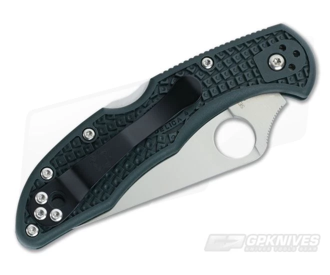 Spyderco’s Delica has been a cornerstone of their everyday carry product line since its introduction in 1990. The 4th Generation of the Delica lightweight was upgraded with a 13 mm RoundHole, spine jimping, reinforced blade tip, skeletonized liners, Bi-Directional Textured FRN scales and a four-position screw on clip. This Fully Flat Ground version comes with a plain edge, modified drop point blade of premium, Japanese ZDP-189 carbon steel and British Racing Green FRN handles.