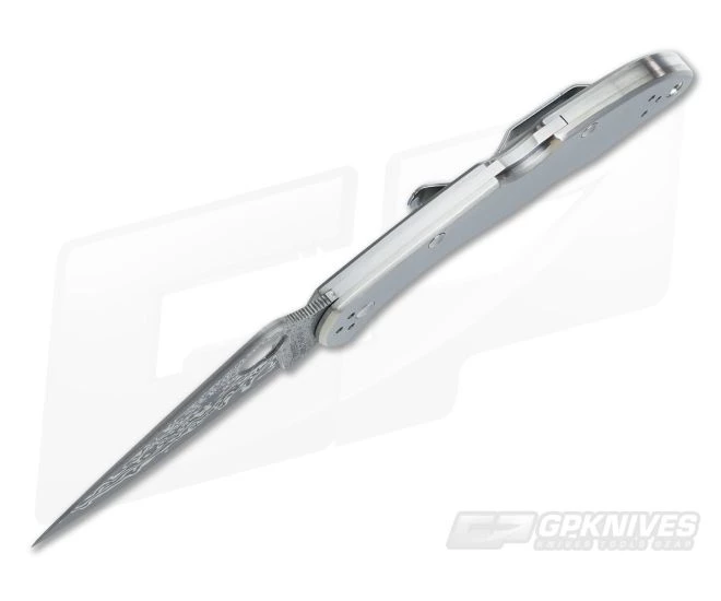 D.P.S. 15 Damascus clad VG10: VG-10 is a high-carbon stainless steel that takes a very good edge and holds it well. Popular with Japanese kitchen knife makers it is often hardened to 60-61 HRC A popular choice for small pocket knives thanks to good edge holding and stain resistance VG10 works well with a high polished, acute edge for optimal slicing performance. Spyderco’s Damascus is a laminated fifteen-layer steel with a Suminagashi pattern, a traditional Japanese art form of creating ripples of Chinese ink on the surface of water.