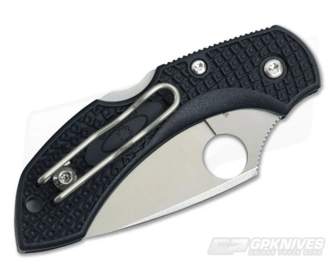 Blade: Delivered in an iconic Leaf-shaped blade, flat ground, satin finished VG10 stainless steel has excellent slicing performance with a fully serrated SpyderEdge. SpyderEdge serrations increase the cutting edge surface by up to 24% and make short work of tough, fibrous materials while still being capable of clean slicing with proper technique. A thumb ramp and index finger choil offer enhanced control and an ergonomic grip while reducing the overall footprint. On the spine of the blade is a subtle swedge that tapers to a fine point for piercing and fine work. Spyderco’s ambidextrous Round Hole opener makes for smooth, easy, one hand operation.