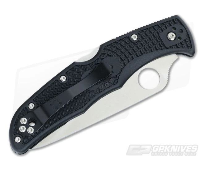 Blade:Â A durable, saber ground VG10 stainless steel blade comes in a modified drop point with a razor sharp, fully serrated SpyderEdge and fine satin finish. SpyderEdge serrations increase the cutting edge surface by up to 24% and make short work of tough, fibrous materials while still being capable of clean slicing with proper technique. Spyderco’s ambidextrous Round Hole opener makes for smooth, easy, one hand operation. Present as well is the jimped thumb ramp for added control in both fine and heavy work. Just under 3.5 inches of cutting edge makes this an excellent cutting tool you will want to have with you every day.