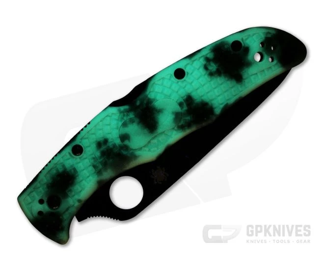 Spyderco’s Endura, big sister to the Delica, has been a cornerstone of their everyday carry product line since its introduction in 1990. The 4th Generation of the Endura lightweight was upgraded with a 13Â mm RoundHole, spine jimping, reinforced blade tip, skeletonized liners, Bi-Directional Textured FRN scales and a four-position screw on clip. Adding style to the Endura line is the unique Zome handle series. This Limited Run distributor exclusive comes with a fully flat ground, Black TiCN coated, plain edge VG10 blade and Glow-In-the-Dark Desert Zome FRN handles. Available while supplies last.