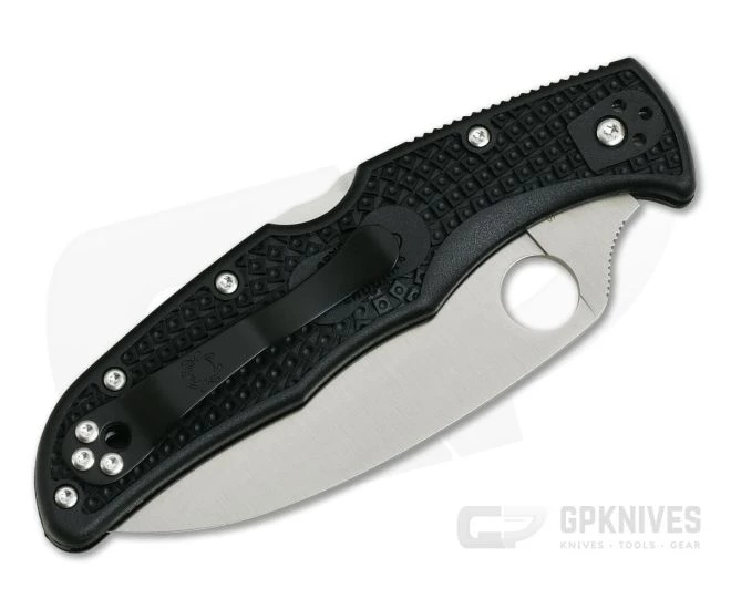 Blade:Â Fully flat ground VG10 stainless steel comes in a Wharncliffe profile with a razor sharp, fully serrated SpyderEdge and stunning satin finish. Wharncliffe blades have the advantage of delivering full power through the cut from heel to tip. SpyderEdge serrations increase the cutting edge surface by up to 24% and make short work of tough, fibrous materials while still being capable of clean slicing with proper technique. Spyderco’s ambidextrous Round Hole opener makes for smooth, easy, one hand operation even in gloves. A jimped thumb ramp provides added control in both fine and heavy work. Just under 3.5 inches of straight cutting edge makes this a powerful cutting tool you will want to have with you every day.