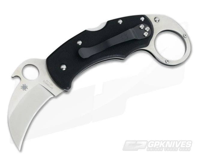 The Spyderco Karahawk Folder C170GP is Spyderco’s interpretation of the traditional Karambit styled knife. Â Designed as a folder, the Karahawk has a slim pocket friendly profile while still offering a stealth hawkbill styled blade and ring in handle. Â As part of Spyderco’s Constant Quality Improvements (CQI), this version boasts a reinforcing layer of G10 between the liners on the ring and very slightly chamfered edges. Â Brand new directly from Spyderco Knives.