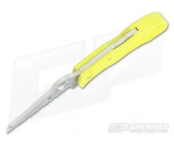 A bit bigger and broader than its female counterpart, the Spyderco Manbug offers a similarly compact package that easily attaches to your key chain or drops into the pocket or bag for everyday carry, offering an efficient cutting tool in an ultra ultra-lightweight package. This Salt series is equipped with a blunt-tipped Sheepsfoot blade for added safety with a fully serrated edge, punching above its weight class, being only 0.80 of an ounce (22.7 grams) thanks to the linerless fiberglass-reinforced nylon construction. As with the Ladybug, Spyderco’s Bi-directional texturing ensures a secure grip with a mid-back lock for safety during use. This Sheepsfoot Salt version comes with Yellow FRN handles and a fully serrated SpyderEdge H1 stainless steel blade.