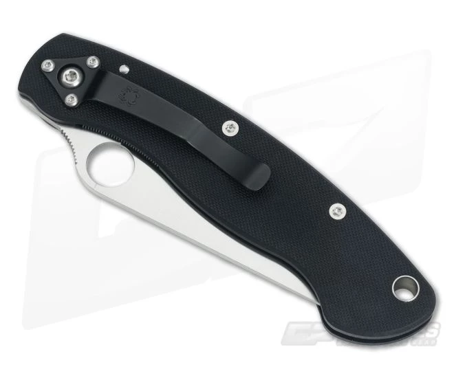 Designed by Sal Glesser to meet the requirements of a high-performance, light-weight folder designed for hard use the Spyderco Military was an answer to the question: “If your son were going into the military what folding knife would you send him with?” The precursor to the popular EDC Paramilitary 2, the Military has a similar clip point blade with large 14 mm Round Hole for ease of operation with gloves and a jimped choil and thumb ramp for optimal control. Nested, skeletonized stainless steel liners support G10 scales for a solid balance of lightweight durability and ease of maintenance. Where ever life may take you the Spyderco Military is a folding knife you can count on. This left-handed version comes with black G10 handle scales and a satin finished, CPM-S30V stainless steel blade.