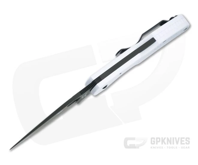 Handle: Lightweight, durable and weatherproof fiberglass reinforced nylon handles makes for easy carry and worry free use. White FRN has a clean look and is ready for personal dye customization. Molded Bi-directional texture ensures a safe grip with smooth edges for comfort. A stout mid-back lock offers flawless ambidextrous operation and rock solid lock up. A through hole clip allows for lanyard attachment.
