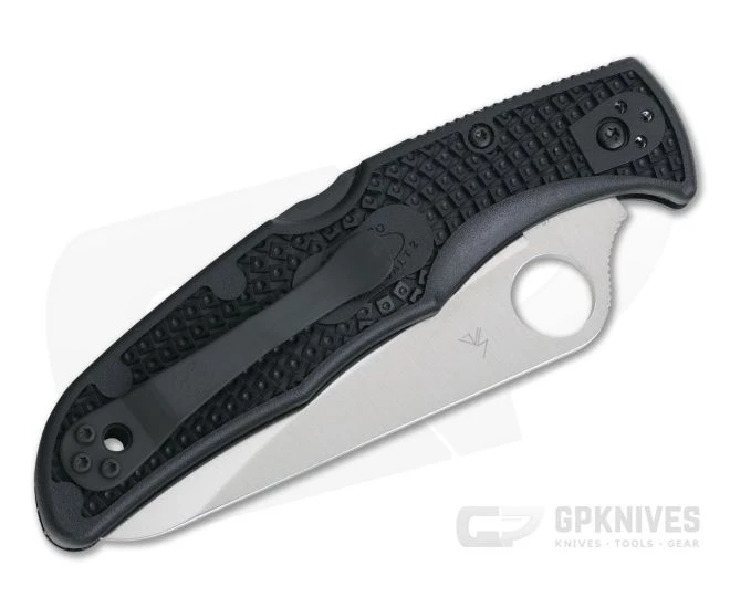 Having endured extensive military testing and issued in aircrew survival kits, the Pacific Salt 2 updates this classic Salt line folder with the ergonomic Gen 4 Endura handles with Bi-Directional textured FRN and 4-position pocket clip while retaining the ultra-corrosion resistant H-1 steel blade. CQI enhanced, the Pac Salt 2 is built with a linerless construction for an even lighter weight and durable, non-reflective titanium carbonitride (TiCN) coated hardware and back lock bar. This version comes with a satin, SpyderEdge Serrated edge blade and black FRN handles.