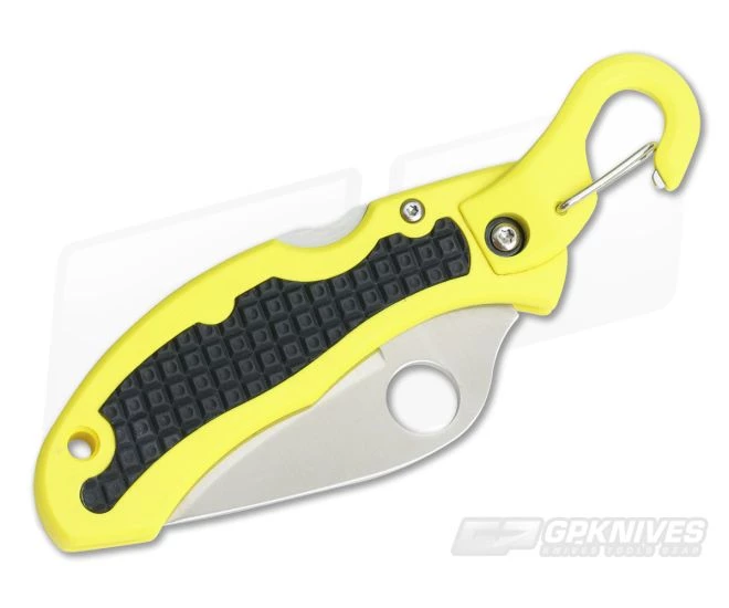 The Spyderco Snap-it returns to the line-up with salt water proof H1 steel that is immune to rust. About the same size as a Spyderco Salt 1, but it has swapped out the normal pocket clip for a snap hook with spring closure. This allows the knife to be suspended from a variety of objects and gear for immediate access.