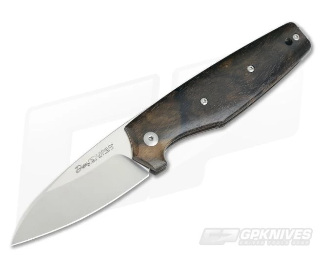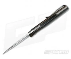 Blade: The Dan 2 sports a Wharncliffe blade made from N690. It has a highly attractive satin finish on the nearly full height flat grind and a slightly crowned spine adding to the classy look of this gentleman’s folder. A short swedge at the tip delivers a fine point for enhanced piercing as well as detail work. This is an everyday workhorse blade wrapped in a classy package.