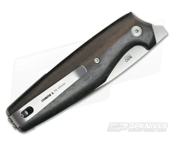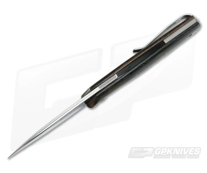 Handle: The handles are ergonomic and contoured to provide comfort and security even during long use. This version has elegant Ziricote wood scales attached to nested stainless steel liners. The liners also contain the Action Stopper mechanism, a set of detent balls that deliver secure, non-locking operation that is similar to a slip joint. A partial titanium back spacer provides a solid mount for the clip which pairs with the slim, smooth design making the knife nearly disappear in the pocket.